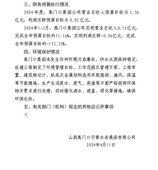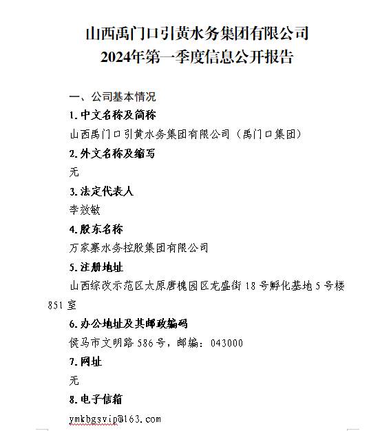 山西水利建設開發咨詢有限公司2024年第一季度信息...