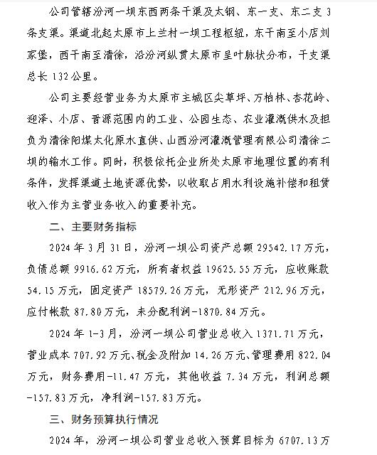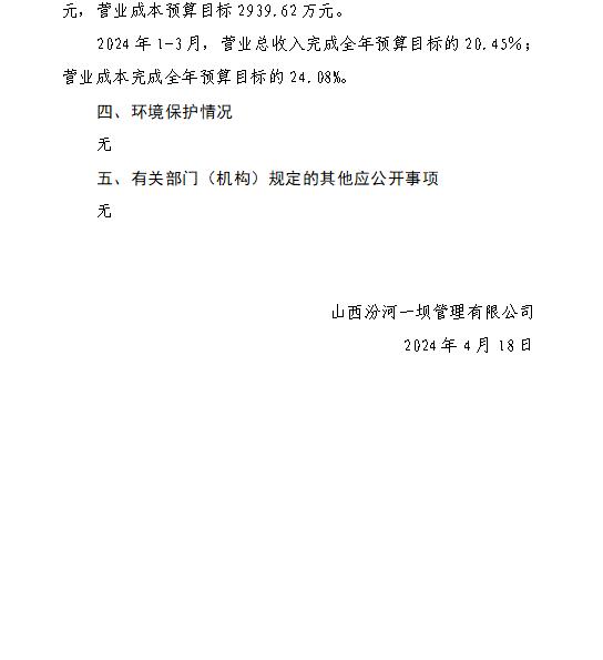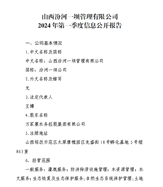 山西小浪底引黃水務集團有限公司2024年第一季度信...