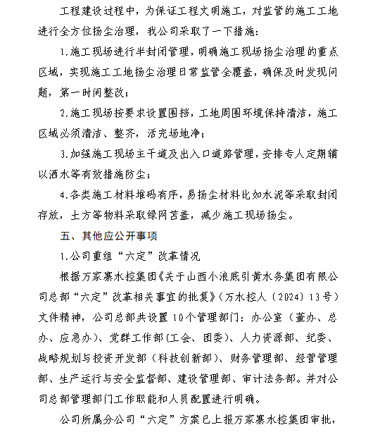 山西水控實業有限公司2024年第一季度信息公開報告