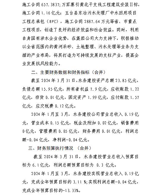 山西汾河灌溉管理有限公司2023年度財務等重大信息...