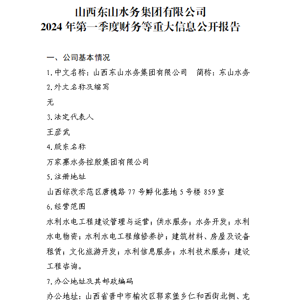 山西汾河流域管理有限公司2024年第一季度財(cái)務(wù)等重...