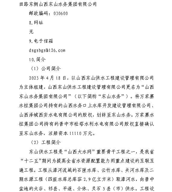 山西東山水務(wù)集團(tuán)有限公司
