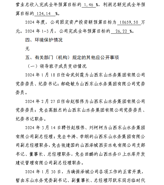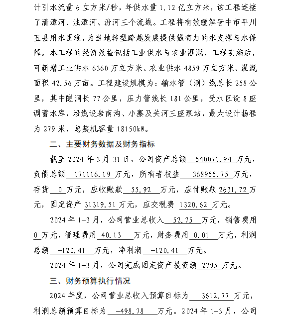 山西中部引黃水務(wù)集團(tuán)有限公司2024年第一季度信息...