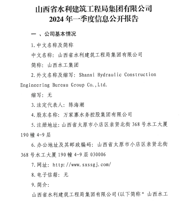 山西沁河水務集團有限公司2024年第一季度信息公開...