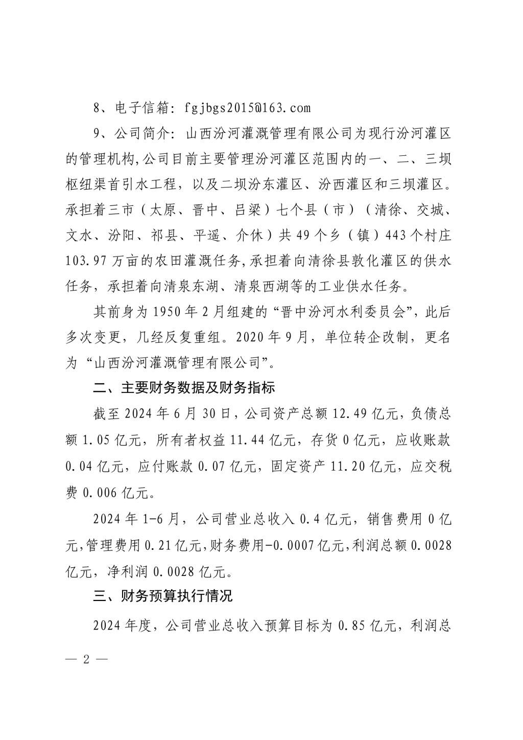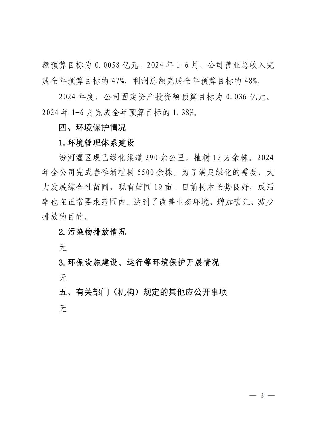 山西水務集團建設(shè)投資有限公司2024年中期信息公開...