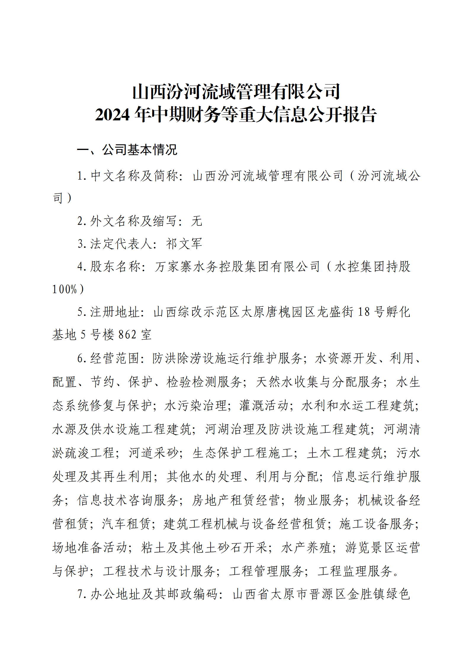 萬家寨水務控股集團有限公司2023年度財務等重大信...