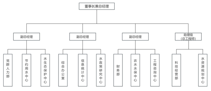 根據(jù)集團(tuán)批復(fù)的“六定”方案,公司批復(fù)企業(yè)負(fù)責(zé)人4 人(已配備1正3副),助理級干部1人(已配備總工程師),中層管理人員11正11副(已配備11正11副),內(nèi)設(shè)行政部室4個,業(yè)務(wù)中心部門7個。組織架構(gòu)見下圖。