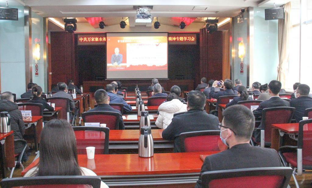 為深入學習宣傳貫徹黨的二十大精神,進一步提升全體黨員尊崇黨章、嚴守黨規、遵守黨紀的政治自覺和行動自覺,2月24日,萬家寨水控集團黨委組織開展黨的二十大精神專題學習會,集中收看《中國共產黨章程(修正案)》專題輔導視頻講座。集團公司黨委班子成員,總會計師,總法律顧問,副總工程師,首席專家,集團總部中層副職及以上干部和集團總部全體黨員參加專題學習會。